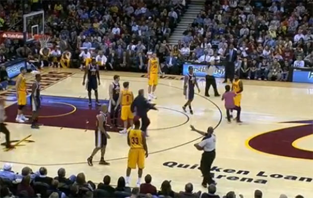 NBA Áhorfandi hljóp inn á völlinn til að taka í hendina á Kyrie Irving Í annað sinn á þremur mánuðum hljóp áhorfandi inn á leik Cleveland og reyndi að taka í hendina á Kyrie Irving. admin1. mars 2014