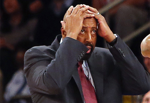 NBA Carmelo hristir hausinn yfir arfaslakri vörn Knicks Carmelo Anthony var ekki sáttur við vörn sinna manna í tapi Bricks fyrir Nets í kvöld. admin20. janúar 2014