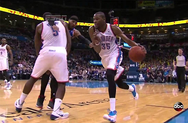 NBA Munurinn á Carmelo Anthony og LeBron James Carmelo Anthony lenti í þessu fullorðinsskríni hjá Kendrick Perkins í nótt en harkaði það samt af sér og hélt áfram. admin10. febrúar 2014
