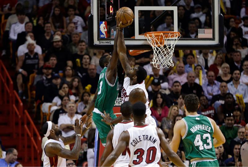 NBA Greg Oden blokkar troðslutilraun Jeff Green Það er smá líf eftir í löppunum á Greg Oden þrátt fyrir allar þessar aðgerðir. admin22. janúar 2014