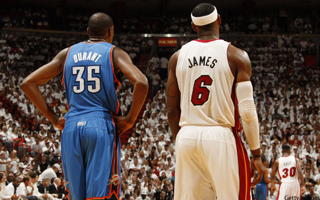 NBA Kevin Durant og LeBron James skora til samans 14 stig á 2 mínútum The Slim Reaper og Kóngurinn settu á svið smá sýningu síðustu nótt. admin30. janúar 2014