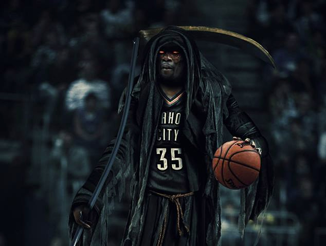 NBA Ótrúlegi AND1 þristur Slim Reaper í nótt Kevin Durant átti hreint ótrúlegan þrist á lokasekúndum venjulegs leiktíma í leik OKC við Memphis í nótt. admin22. apríl 2014