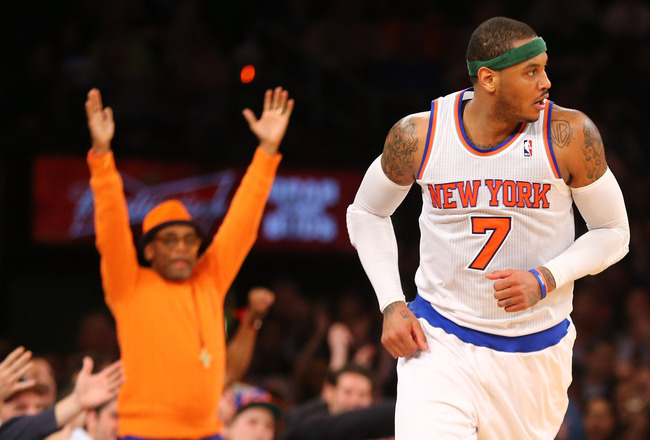 NBA Carmelo Anthony setti 62 stig á móti Bobcats í nótt Carmelo braut í nótt 19 ára félagsmet Bernard King yfir flest stig skoruð í einum leik. admin25. janúar 2014