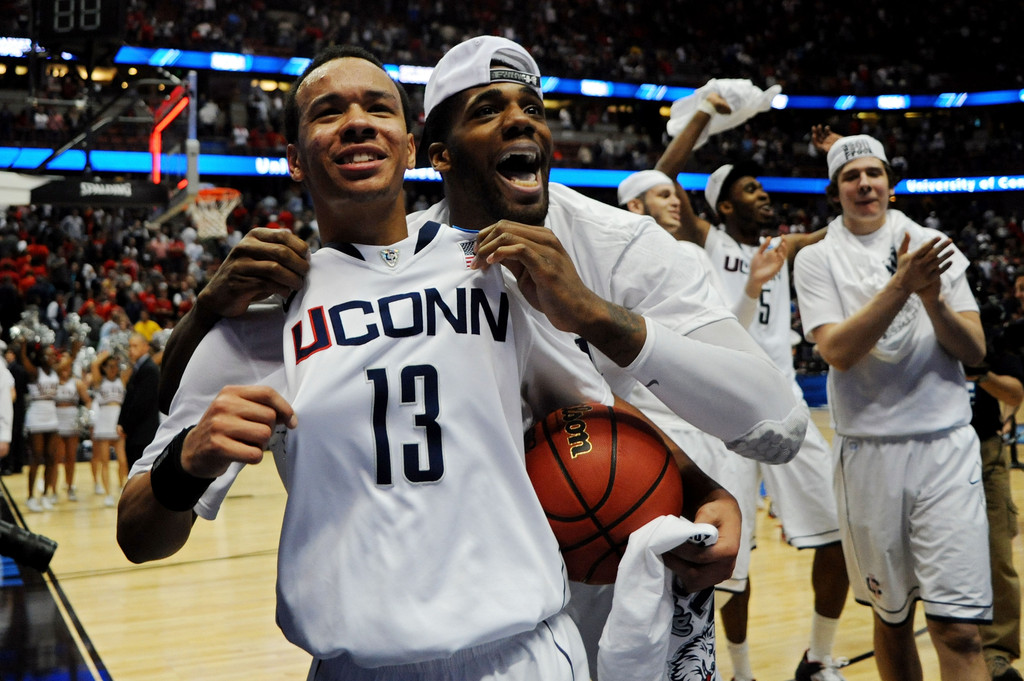 Heimurinn Shabazz Napier setur niður sigurkörfuna og hleypur strax inn í klefa Shabazz Napier var eitthvað að flýta sér því hann staldraði ekki við á vellinum eftir að hafa sett niður sigurkörfu UConn. admin3. desember 2013